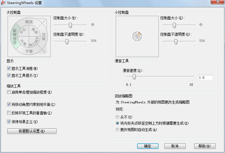 指定视图更改发生在 SteeringWheels 之外时不生成预览缩略图。