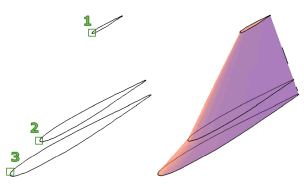 通过指定一系列横截面来创建三维实体或曲面。横截面定义了结果实体或曲面的形状。必须至少指定两个横截面。