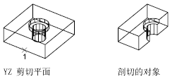 将剪切平面与当前 UCS 的 YZ 平面对齐。指定一点定义剪切平面的位置。