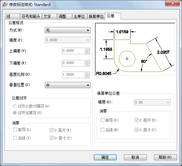 控制是否禁止输出前导零和后续零以及零英尺和零英寸部分。(DIMALTTZ 系统变量)