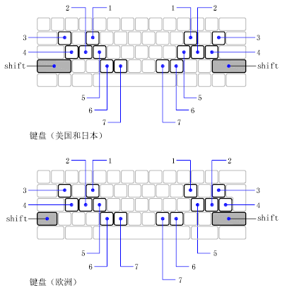 下图中的键为默认键,但您可以根据需要更改键指定并添加自定义键。